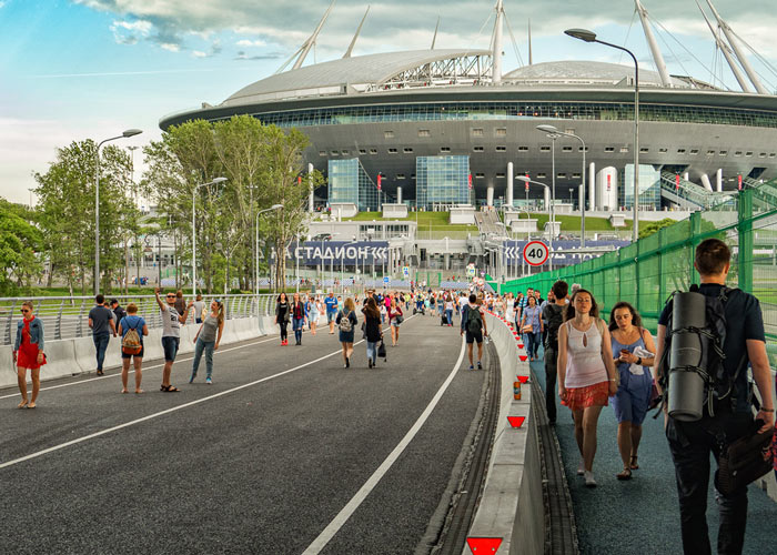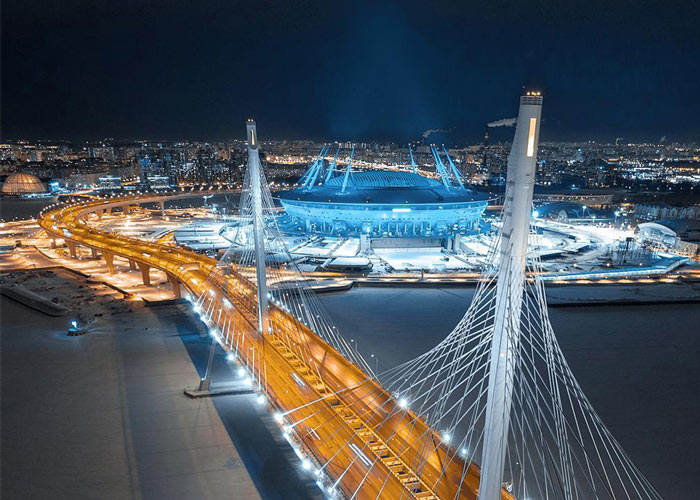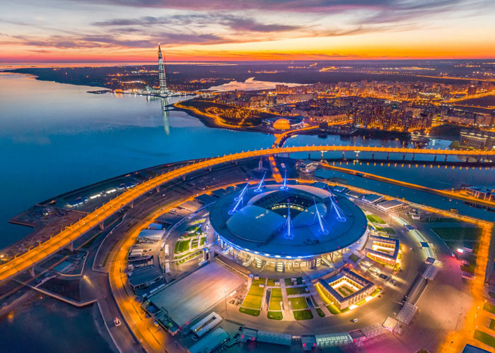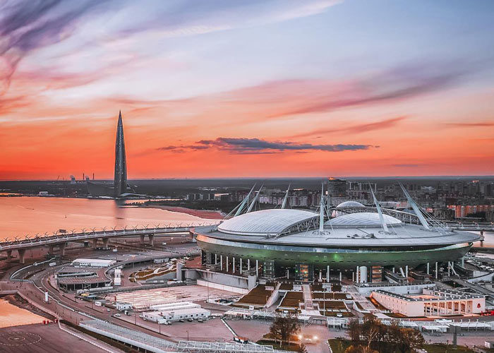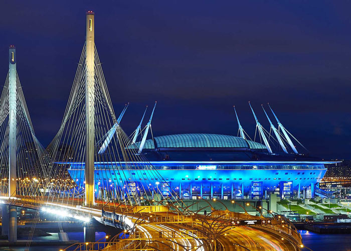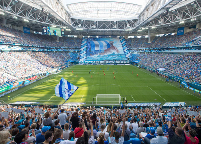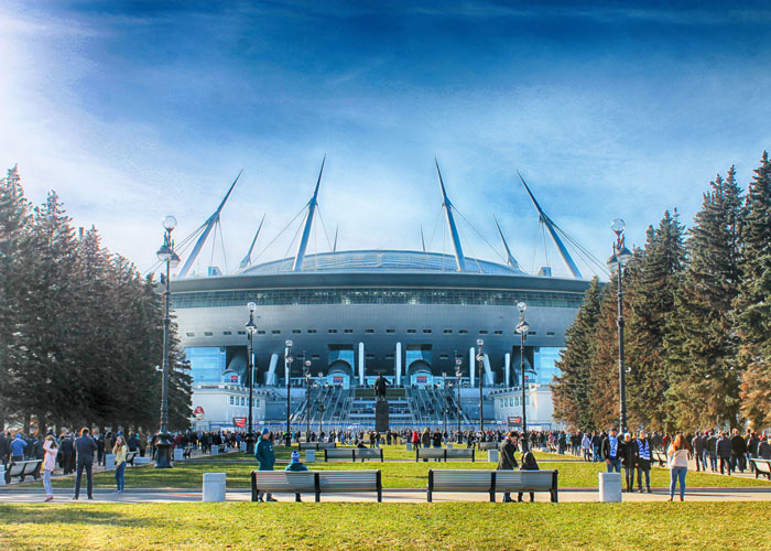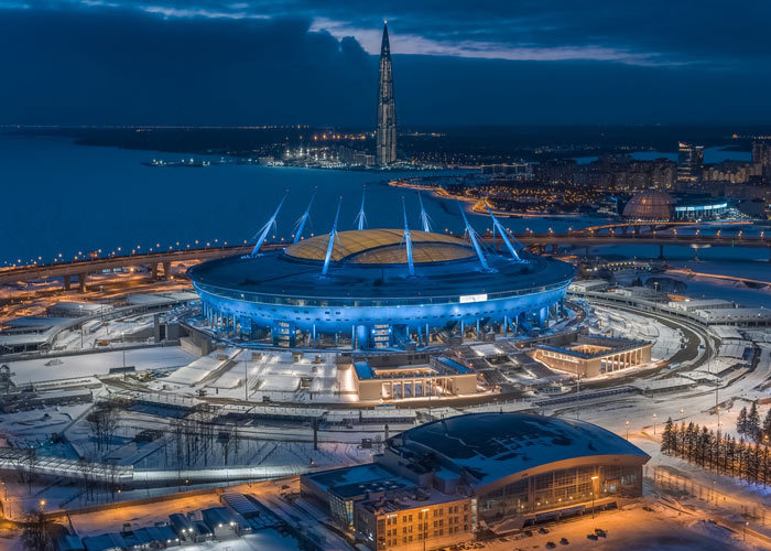«Газпром Арена» - это уникальное архитектурное сооружение и единственный в России стадион с раздвижной крышей. Благодаря этому конструкторскому решению на стадионе можно проводить матчи в любую погоду, в том числе, и зимой.Вместимость – 62 315 мест